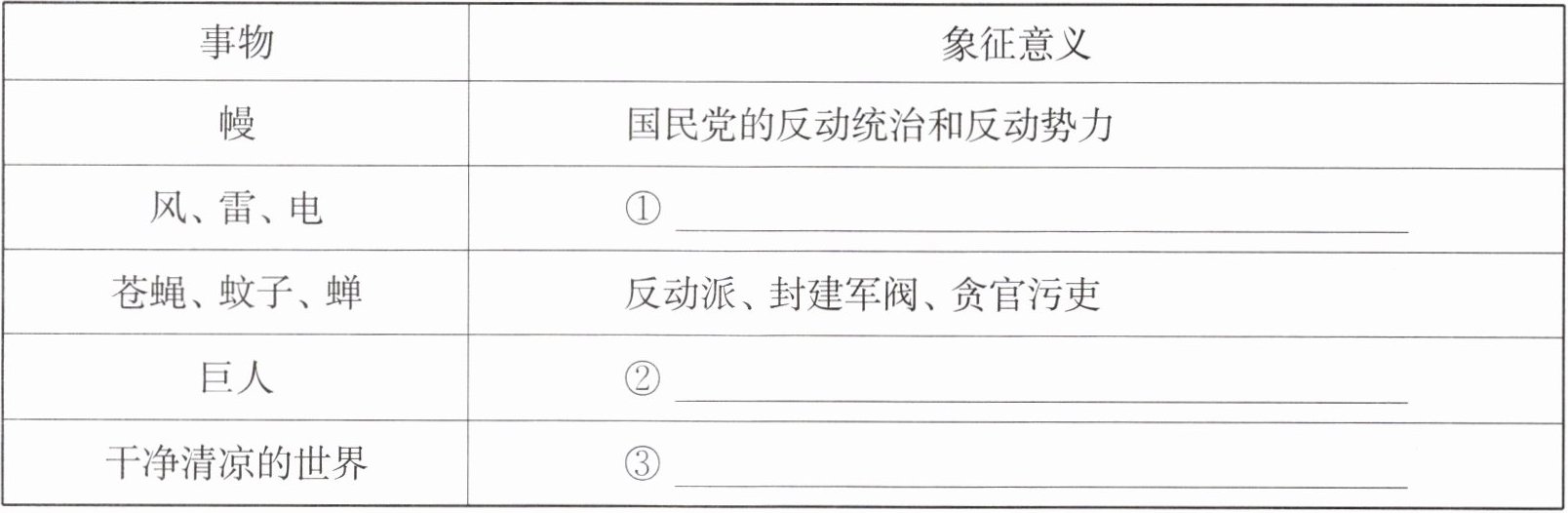 13. 象征是全文最主要的表现手法,请你联系全文,并结合注释,完成填空。