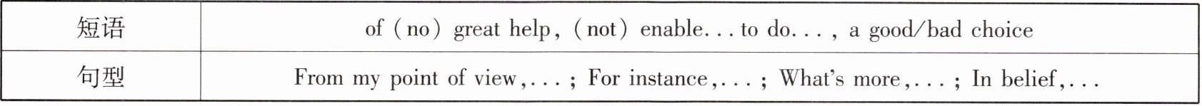 |句型|From my point of view,... ; For instance,... ; What's more,... ; In belief,...|