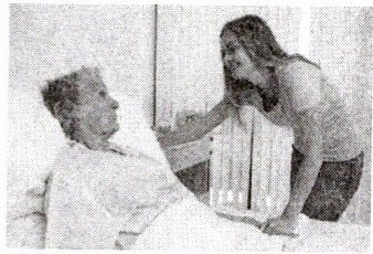 1. In an old people's home. 2. No, she didn't. 3. Slowly with a straw. 4. She gave her daughter's hand a pat three times/She patted her daughter's hand three times. 5. It's great to have someone who loves me/It's nice to have you stay with me/I love you, dear/Thank you for taking care of (caring for/looking after) me/Thanks for being so nice (kind) to me/I'm happy to have such a good daughter, etc. (Any reasonable answer is acceptable.) 6. Shortly after that day.