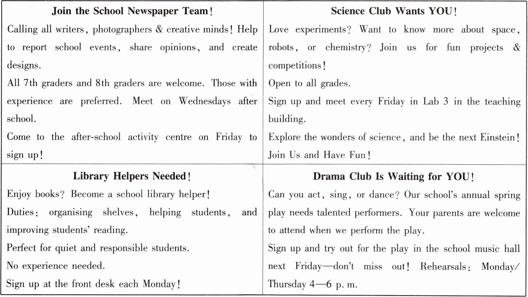 | Join the School Newspaper Team! | Science Club Wants YOU! |