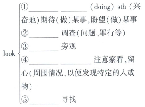①forward to ②into ③on ④out for ⑤for