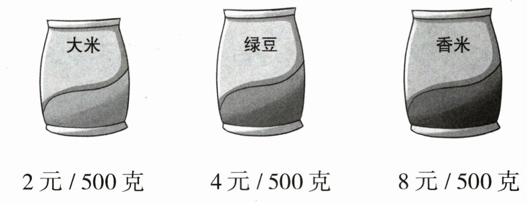 (1)买2千克绿豆和500克香米一共需要多少元?
