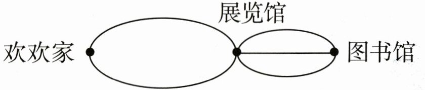 1. 如图,欢欢从家出发,经过展览馆去图书馆,一共有(