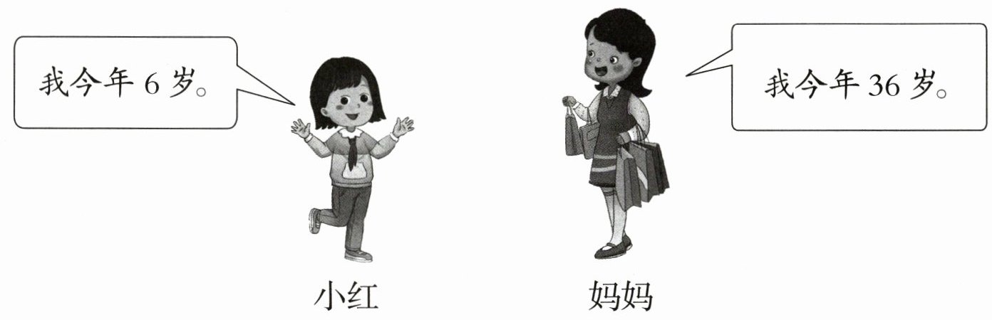 (2) 去年小红年龄:$6 - 1 = 5$(岁)