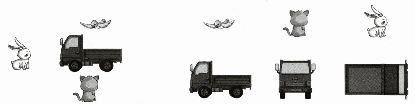 小鸟看到的是卡车的上面,对应图形是最后一张图;