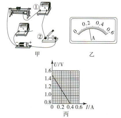 A。(3)调节滑动变阻器阻值,测得多组电表读数,作出图丙所示的U - I图像,则待测干电池电动势E =