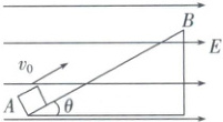 2.(静电场中的运动问题)如图所示,把一个倾角为$\theta$的光滑绝缘斜面固定在匀强电场中,电场方向水平向右,有一质量为$m$、电荷量为$+q的物体以初速度v_0从A$端滑上斜面恰好沿斜面匀速运动,求匀强电场的电场强度的大小(重力加速度取$g$)。