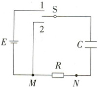 D.放电过程中,电容器的上极板带负电荷,流过电阻R的电流由N点流向M点