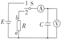 2. (电容器的充、放电)(2025·北京丰台统考期末)如图所示,把直流电源、定值电阻R、电容器、电流表、电压表以及单刀双掷开关组装成实验电路,观察电容器的充、放电现象。下列说法正确的是 (