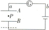 例7 (多选)如图所示,平行板电容器A、B间有一带电油滴正好静止在极板正中间P点,现将B极板匀速向下移动到虚线位置,其他条件不变,则在B极板移动的过程中 (