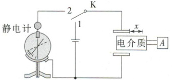 4. (电容器的动态分析)(2025·浙江省部分学校期末)在如图所示的电路中,电介质板与被测量的物体A相连,当电介质向左或向右移动时,通过相关参量的变化可以将A定位。开始时单刀双掷开关接1,一段时间后将单刀双掷开关接2,则下列说法错误的是 (