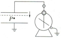 例8 (多选)如图所示,平行板电容器带有等量异种电荷,与静电计相连,静电计金属外壳和电容器下极板都接地。在两极板间有一固定在P点的点电荷,以E表示两板间的电场强度,$ E_{p} $表示点电荷在P点的电势能,$\theta$表示静电计指针的偏角。若保持下极板不动,将上极板向下移动一小段距离至图中虚线位置,则 (