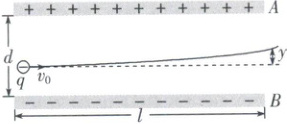 ,所以偏移距离$y = \frac{1}{2}at^2 = $$\frac{qUl^2}{2mdv_0^2}$