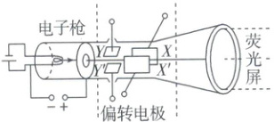 (4)示波管偏转电极不加电压时,从电子枪射出的电子将沿直线运动。(