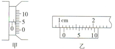 (1)螺旋测微器和游标卡尺的示数如图甲和乙所示,由图读得圆柱体的直径为$\underline{\hspace{1cm}}mm,$长度为$\underline{\hspace{1cm}}mm。$