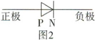 (2)若用已调好的多用电表电阻挡“×10”挡来探测一只二极管的正、负极(如图 2 所示)。当两表笔分别接二极管的正、负极时,发现表针几乎不发生偏转(即指示电阻接近无限大);再将两表笔与二极管两极的连接情况对调,发现表针指在图 1 表盘中的虚线①的位置,此时红表笔接触的是二极管的
