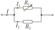 在如图所示的并联电路中,若保持通过干路的电流 $ I $ 不变,增大 $ R_{1} $ 的阻值,下列说法正确的是 (