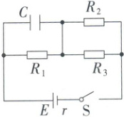 例8 (2025·江苏常州市期中)如图所示,电源电动势$E= 6V$,内阻$r= 2\Omega$,定值电阻$R_{1}= 2\Omega,R_{2}= 3\Omega,R_{3}= 6\Omega$,电容器的电容$C= 10\mu F$,闭合开关$S$,电路稳定后,求: