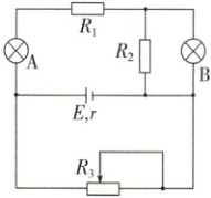 2. (闭合电路的动态分析)在如图所示的电路中,灯泡$A和灯泡B$原来都是正常发光的。现在突然发现灯泡$A$比原来变暗了些,灯泡$B$比原来变亮了些,则电路中出现的故障可能是