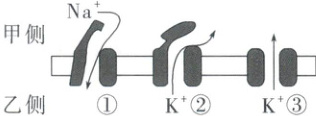 )A.甲侧为细胞外侧,其 Na⁺浓度高于乙侧