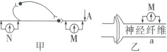 3. 图甲表示中枢神经元之间的一种连接方式,M和N为连接在神经元表面的电流计;图乙是图甲的局部放大图。下列说法错误的是(