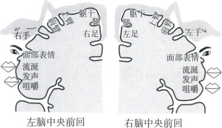 C.若刺激右侧大脑皮层的中央前回可引起其左侧肢体运动