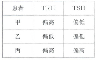2. (2025·江苏无锡高二期末) 下表为三位低甲状腺激素患者的促甲状腺激素释放激素(TRH)和促甲状腺激素(TSH)水平。下列叙述错误的是(