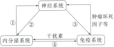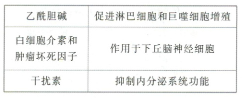 [探究2] 根据表中结果,说明神经系统、内分泌系统和免疫系统的关系是神经系统能影响免疫系统的功能,免疫系统也能影响神经系统的功能。