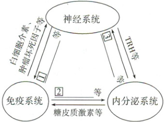 1. 神经系统、内分泌系统与免疫系统通过信息分子相互作用示例