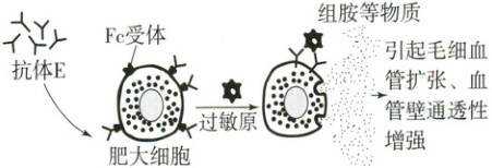 )A.过敏原初次进入内环境,不会诱导抗体E的生成