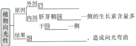 ⑰单侧光照射 ⑱背光 ⑲向光 ⑳两侧生长不均匀