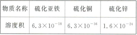 向含有等物质的量浓度的$FeCl_2$、$CuSO_4$、$ZnSO_4混合溶液中滴加0.01mol\cdot L^{-1}Na_2S$溶液时,$Fe^{2+}$、$Cu^{2+}$、$Zn^{2+}$沉淀的先后顺序为 (