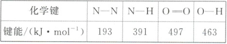 。(2) 已知$ N_2H_4(g) + O_2(g) = N_2(g) + 2H_2O(g) ΔH = -544 kJ·mol⁻^1。$各化学键的键能数据见下表:
