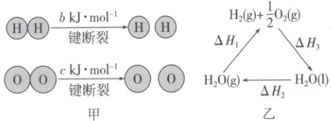 4. (2025·柳州高二月考) 在一定条件下$,H_2 $和$ O_2 $发生反应$ 2H_2(g) + O_2(g) = 2H_2O(g) ΔH = -a kJ·mol⁻^1。$已知:a、b、c 均大于零。结合甲、乙两图,判断下列说法不正确的是 (