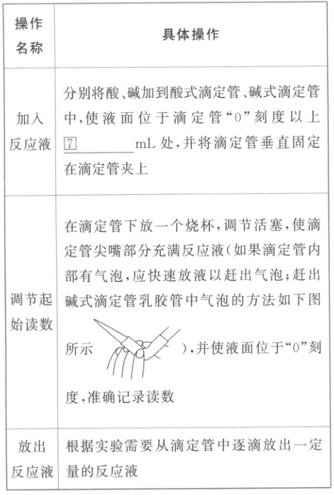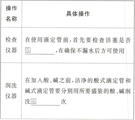 1. 酸式(或碱式)滴定管在洗涤时,内壁会残留少量的水,若不用待装液润洗,则会降低所盛溶液的浓度,最终影响实验的精确度,因此需要用酸(或碱)润洗酸式(或碱式)滴定管 2~3 次,以减小实验误差。