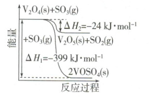 解析:根据题图知,V₂O₄(s)+2SO₃(g)═══2VOSO₄(s) ΔH₁=-399kJ·mol⁻¹①,V₂O₄(s)+SO₃(g)═══V₂O₅(s)+SO₂(g) ΔH₂=-24kJ·mol⁻¹②。根据盖斯定律,由①-②×2得2V₂O₅(s)+2SO₂(g)═══2VOSO₄(s)+V₂O₄(s) ΔH=[-399-(-24×2)]kJ·mol⁻¹=-351kJ·mol⁻¹。答案:2V₂O₅(s)+2SO₂(g)═══2VOSO₄(s)+V₂O₄(s) ΔH=-351kJ·mol⁻¹