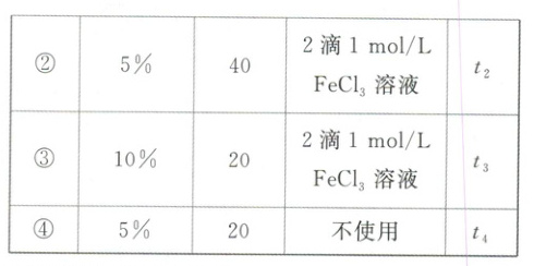 4. (2025·济宁高二月考) 为了探究外界条件对H₂O₂分解反应速率的影响,某同学在4支试管中分别加入3mLH₂O₂溶液,测量并收集$VmL$气体时所需的时间,实验记录见下表: