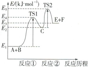 3. 下图表示某化学反应历程,其中 $TS$ 表示中间过渡态(活化分子)。回答下列问题:
