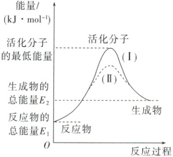 (2) 对于同一反应,图中虚线(Ⅱ)与实线(Ⅰ)相比,活化分子的最低能量明显降低,反应速率增大,你认为最有可能的原因是