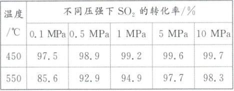 (3)0.1 MPa(常压)下 SO₂的转化率已经很高,若采用较大的压强,不仅 SO₂的转化率提高很少,且需要更大动力,对设备的要求更高,增加生产成本