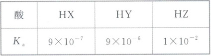 )A.三种酸的酸性强弱关系:$ {HX} \gt {HY} \gt {HZ} $