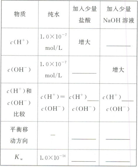 (2)常温下,取三只烧杯A、B、C,分别加入适量纯水,再向B、C烧杯中分别加入少量盐酸和$NaOH$溶液,分析下表并填空。