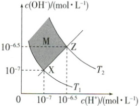 B.M区域内(不包括边界)任意点均有$c(H^+) < c(OH^-)$