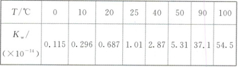 (1)查阅资料,不同温度下水的离子积常数见下表。