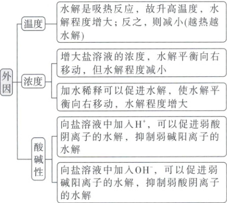 盐类水解程度的大小,主要是由盐本身的性质所决定的。生成盐的弱酸酸性(或弱碱碱性)越弱,该盐的水解程度越⑦