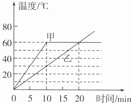 8. 用两个完全相同的加热器分别加热质量和初温相同的甲、乙两种不同液体,加热过程中,甲、乙两种不同液体的温度随时间变化的图像如图所示。由图可知,加热 10 min,甲液体吸收的热量