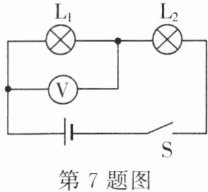 7. 小湘同学连接了如图所示的电路进行实验。当闭合开关时,其中一盏灯发光,另一盏灯不发光,电压表有示数。则故障可能是(
