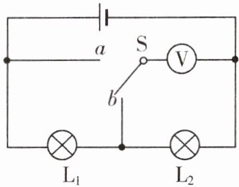 当开关$S$接到$b$时,电压表测$L_2$两端电压$U_2 = 4V$。