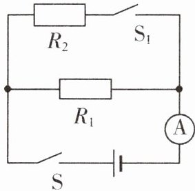 9. 如图所示的电路中,电源电压恒定,已知$R_{1}为20\Omega$,闭合开关$S$、断开$S_{1}时电流表的读数是1.5A$,同时闭合开关$S$、$S_{1}时电流表读数是2.1A$。求: