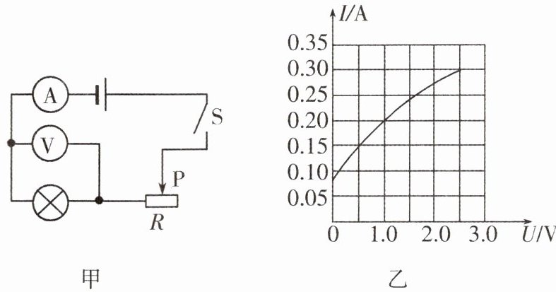 8. 在测量小灯泡电阻的实验中,电路如图甲所示,小灯泡标有“$2.5V$”字样,滑动变阻器规格为“$50\Omega\ 1A$”,实验得到小灯泡的$I-U$图像如图乙所示。当滑动变阻器接入电路的阻值为$5\Omega$时,小灯泡正常发光。求: